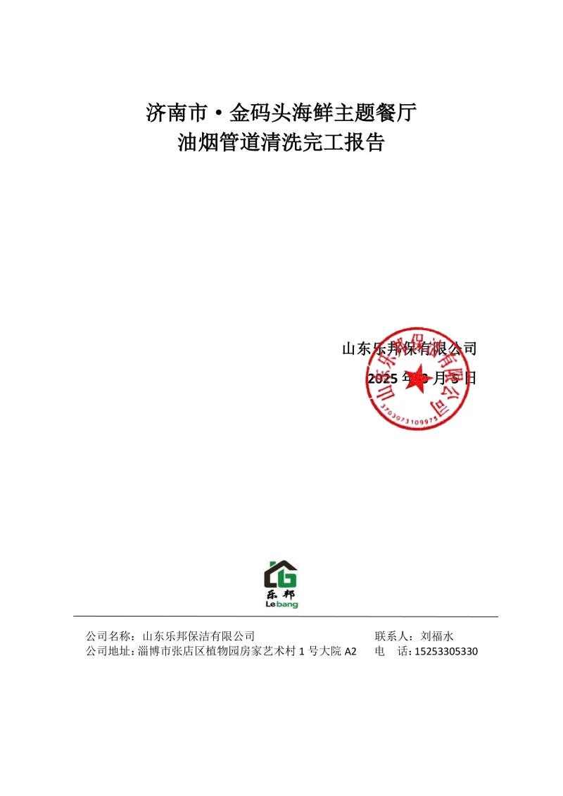 濟南市·金碼頭海鮮主題餐廳清洗報告25.3.5