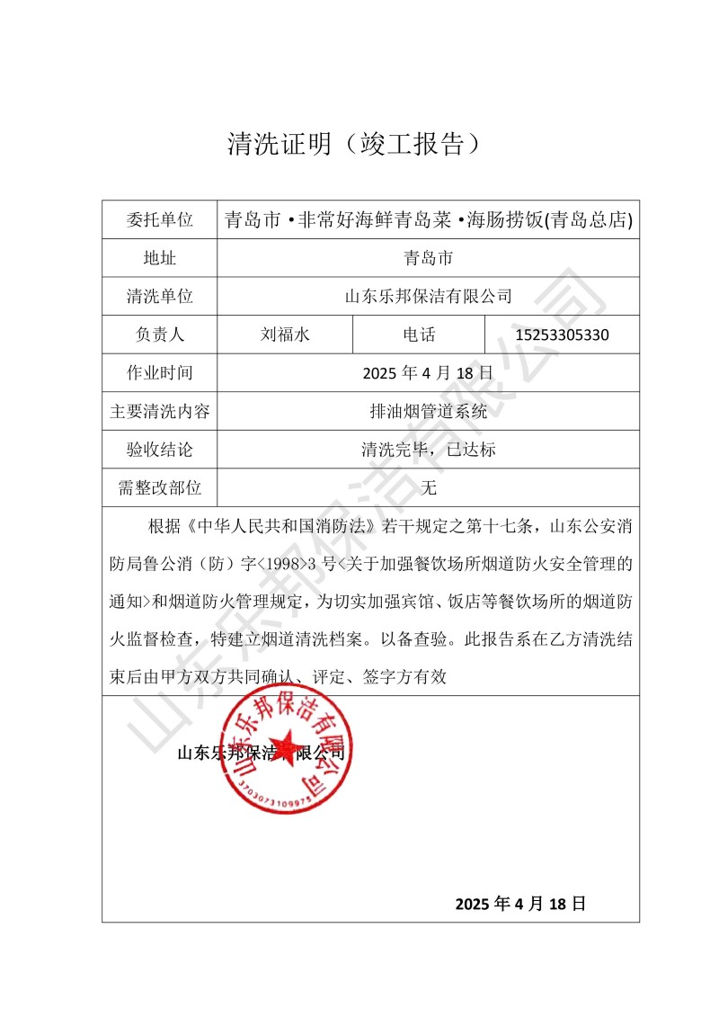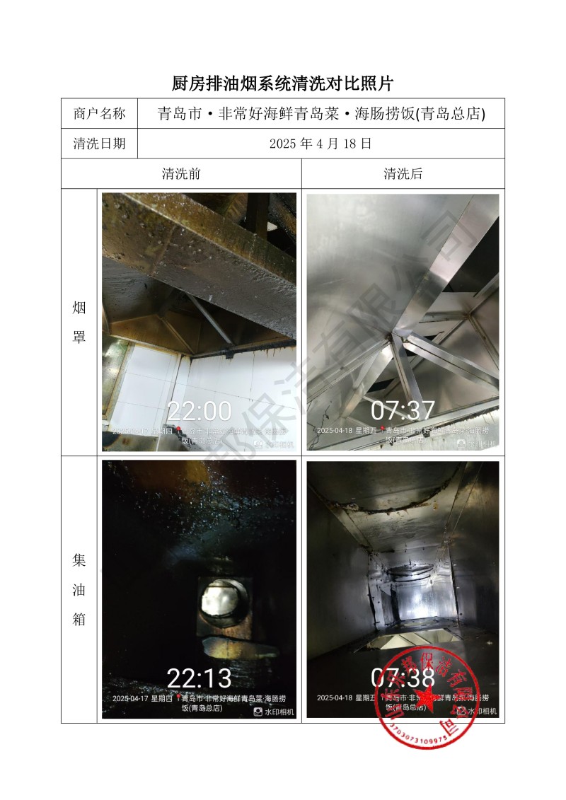 青島市·非常好海鮮青島菜·海腸撈飯(青島總店)清洗報告25.4.18