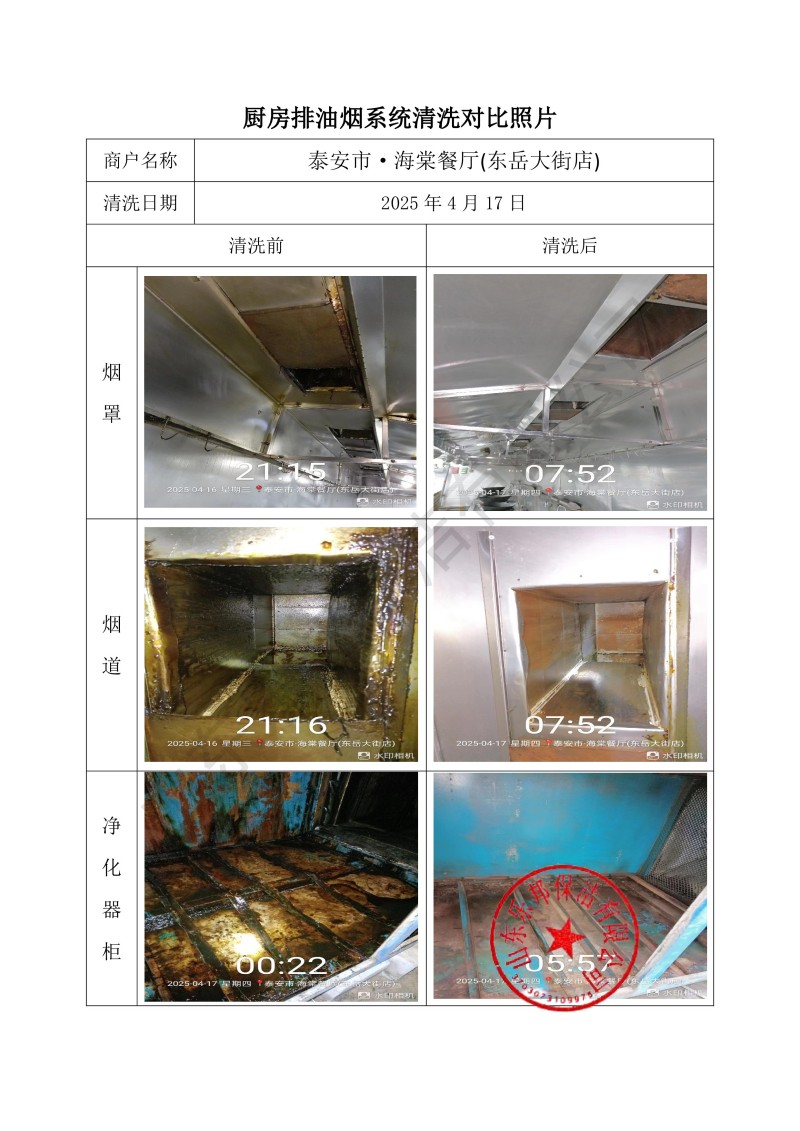 泰安市·海棠餐廳(開發區店)清洗報告25.4.19