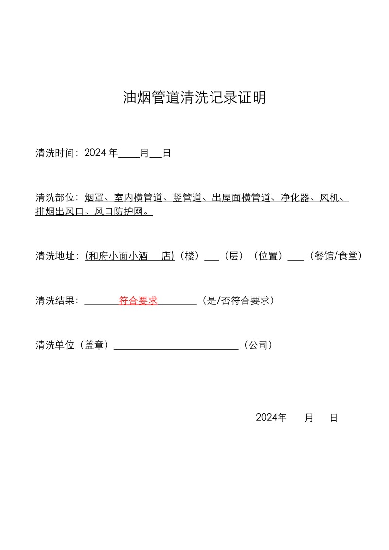 萬象匯和府小面小酒清洗報告25.1.5