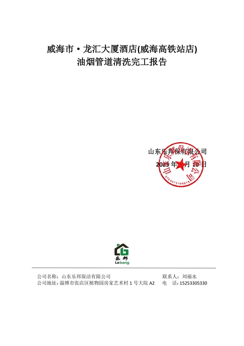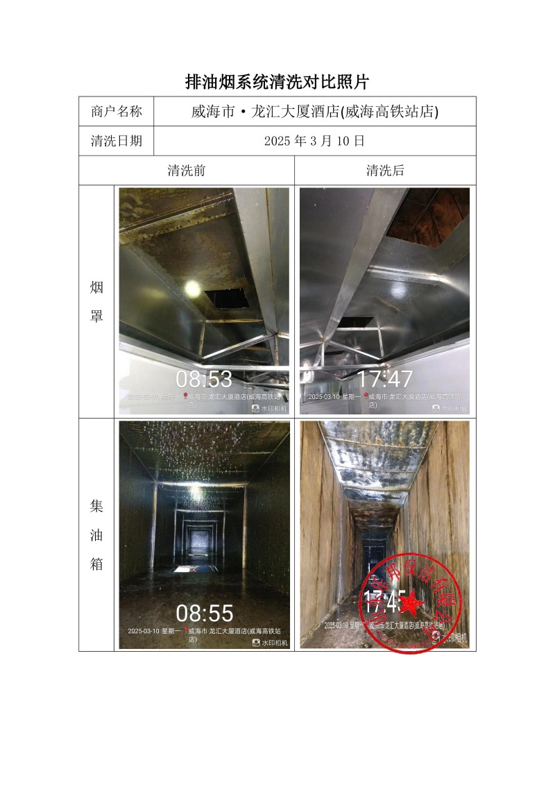 威海市·龍匯大廈酒店(威海高鐵站店)清洗報告25.3.10