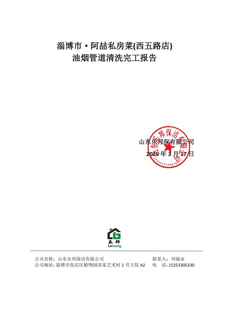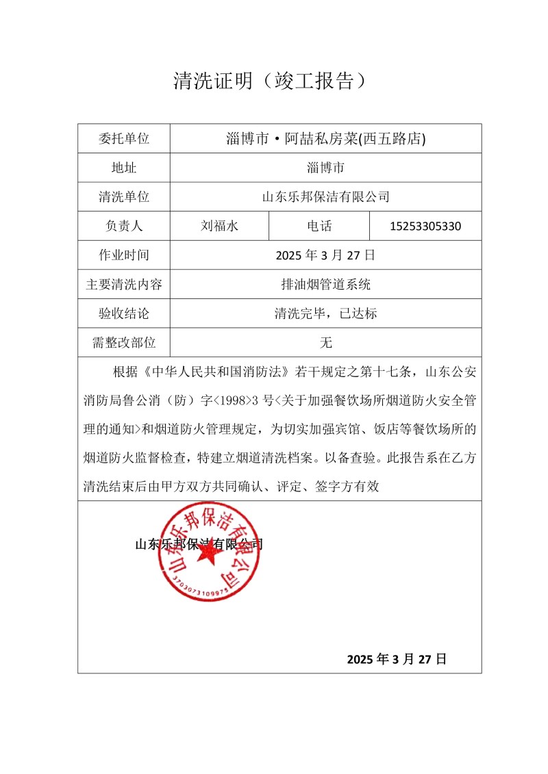 淄博市·阿喆私房菜(西五路店)清洗報告25.3.27