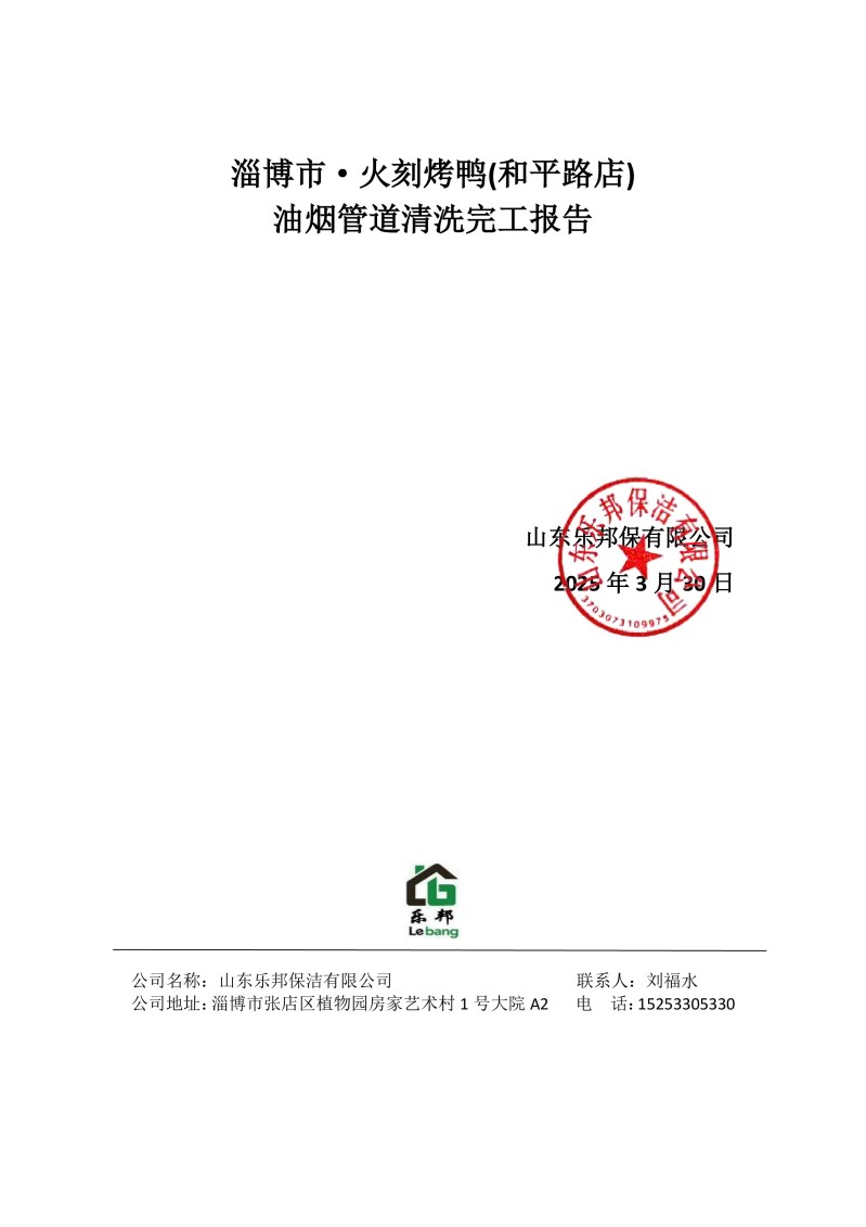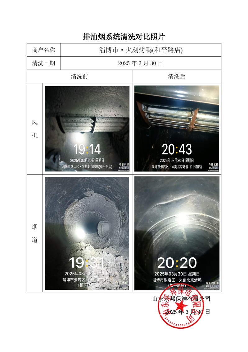 淄博市·火刻烤鴨(和平路店)清洗報告25.3.30