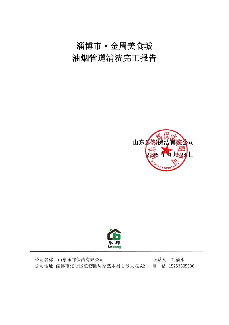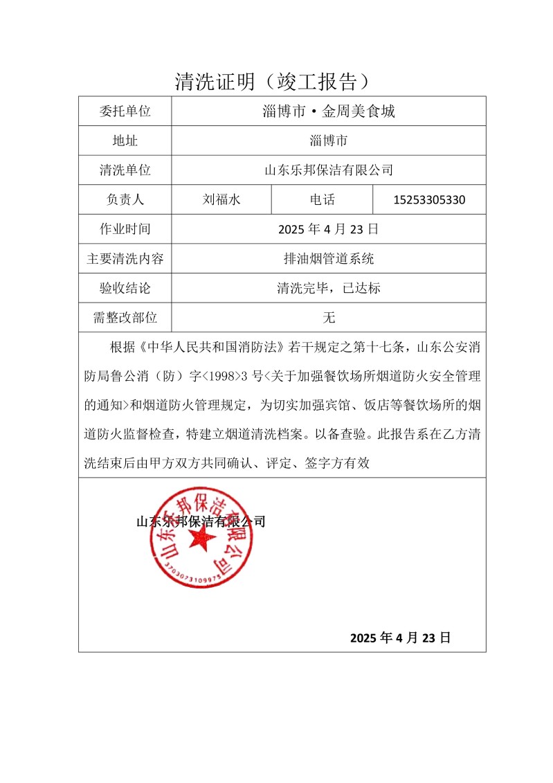 淄博市·金周美食城清洗報告25.4.23