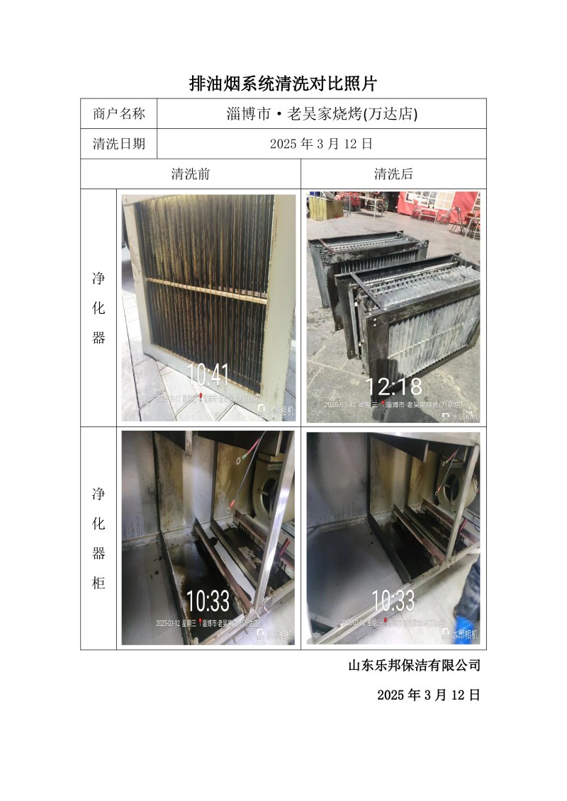 淄博市·老吳家燒烤(萬達店)清洗報告25.3.12