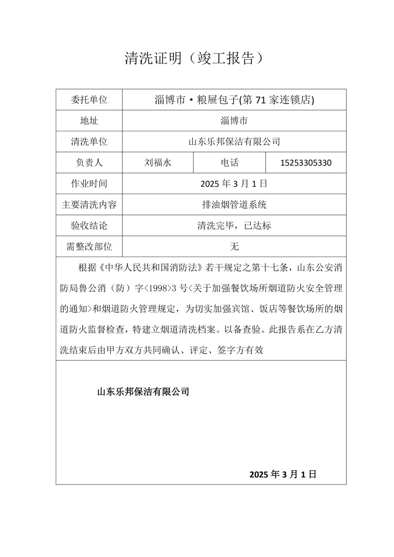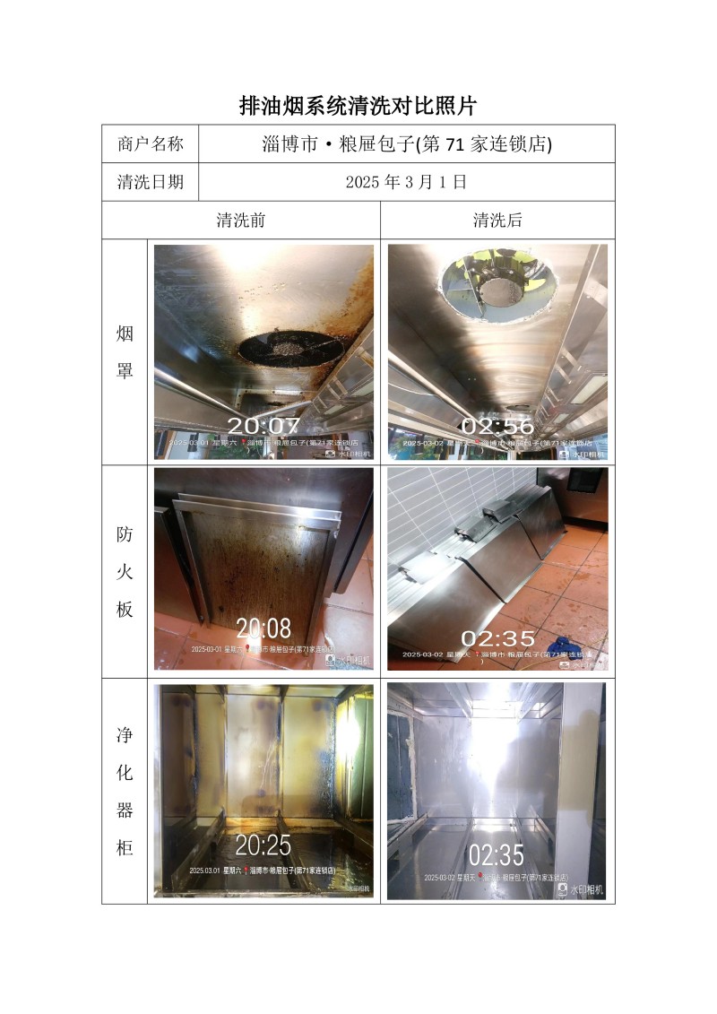 淄博市·糧屜包子(第71家連鎖店)清洗報告25.3.1
