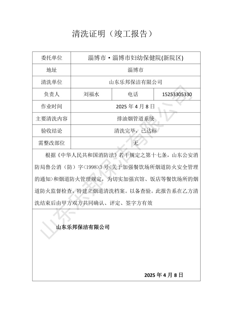淄博市·淄博市婦幼保健院(新院區(qū))清洗報(bào)告25.4.8