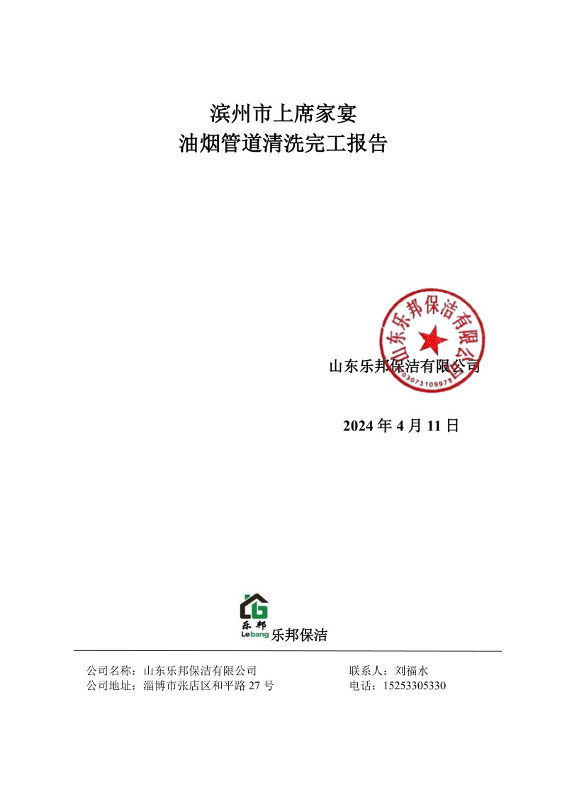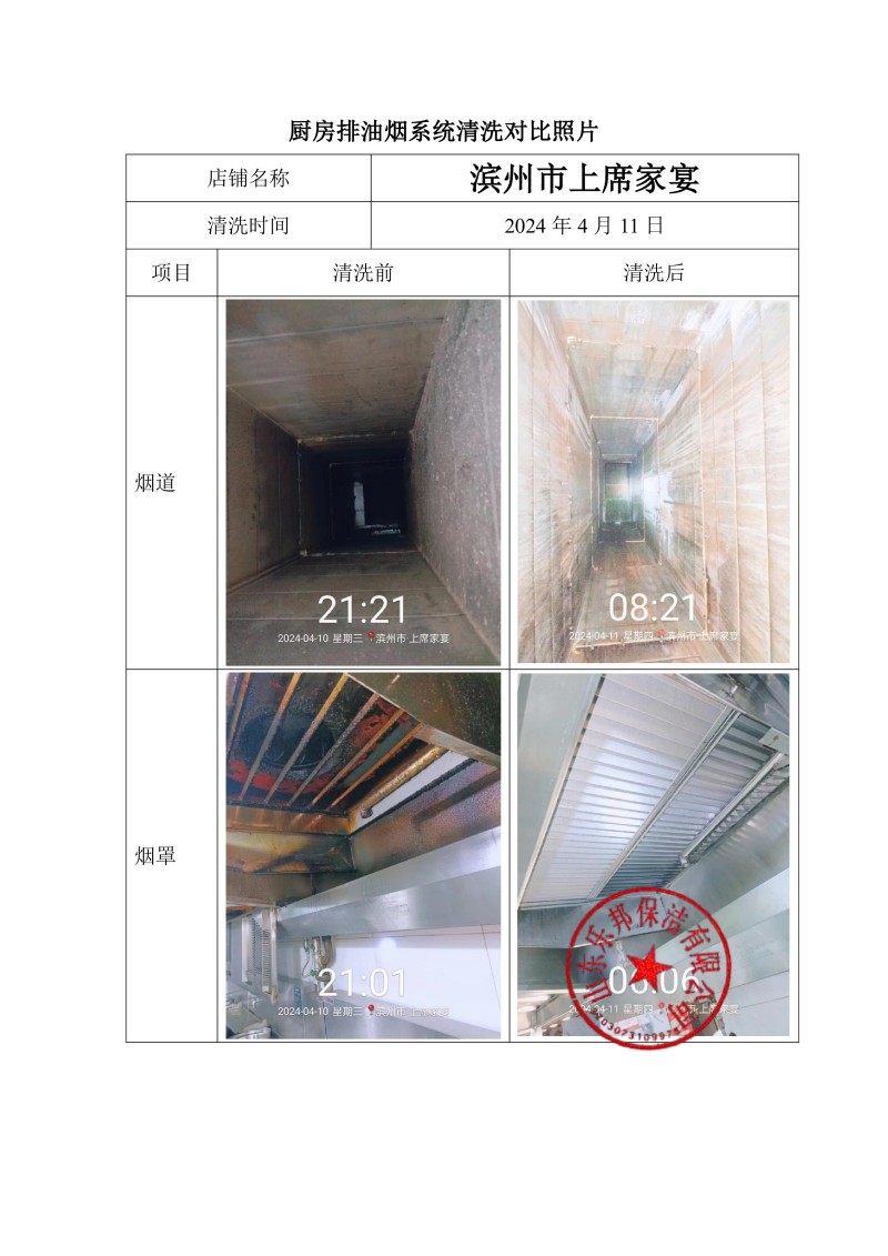 濱州市上席家宴清洗報告24.4.11