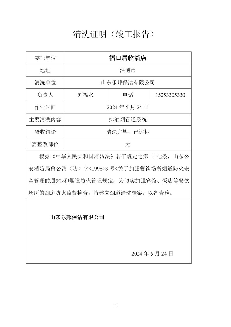 福口居臨淄店清洗報(bào)告24.5.22