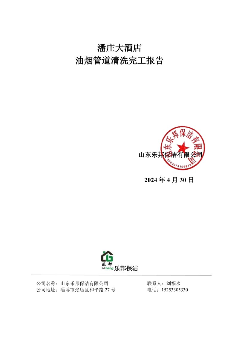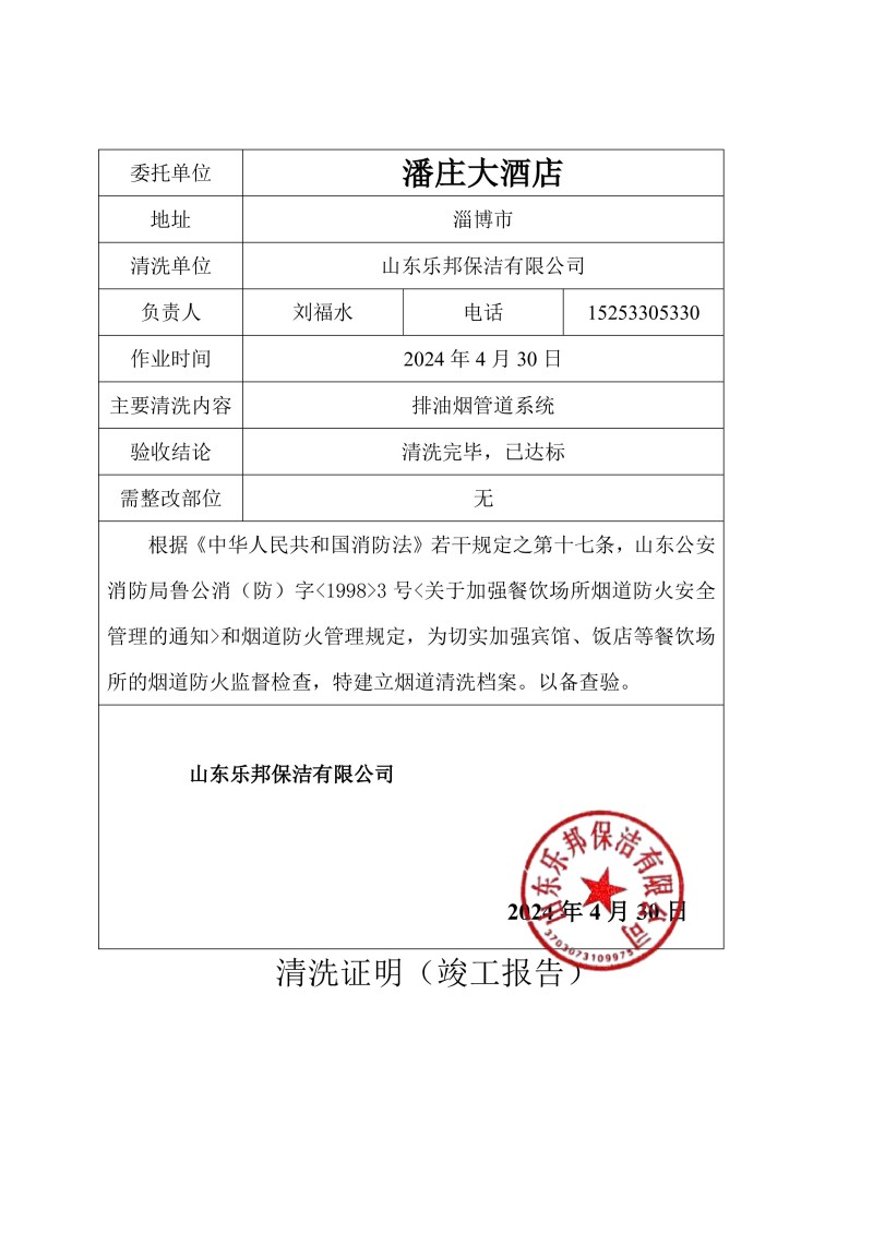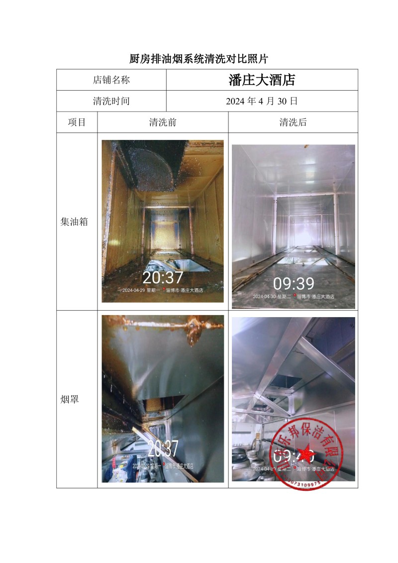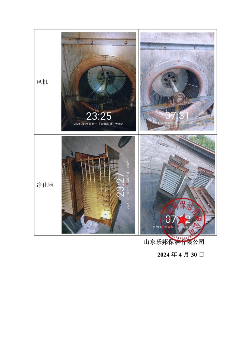 潘莊大酒店清洗報告24.4.30