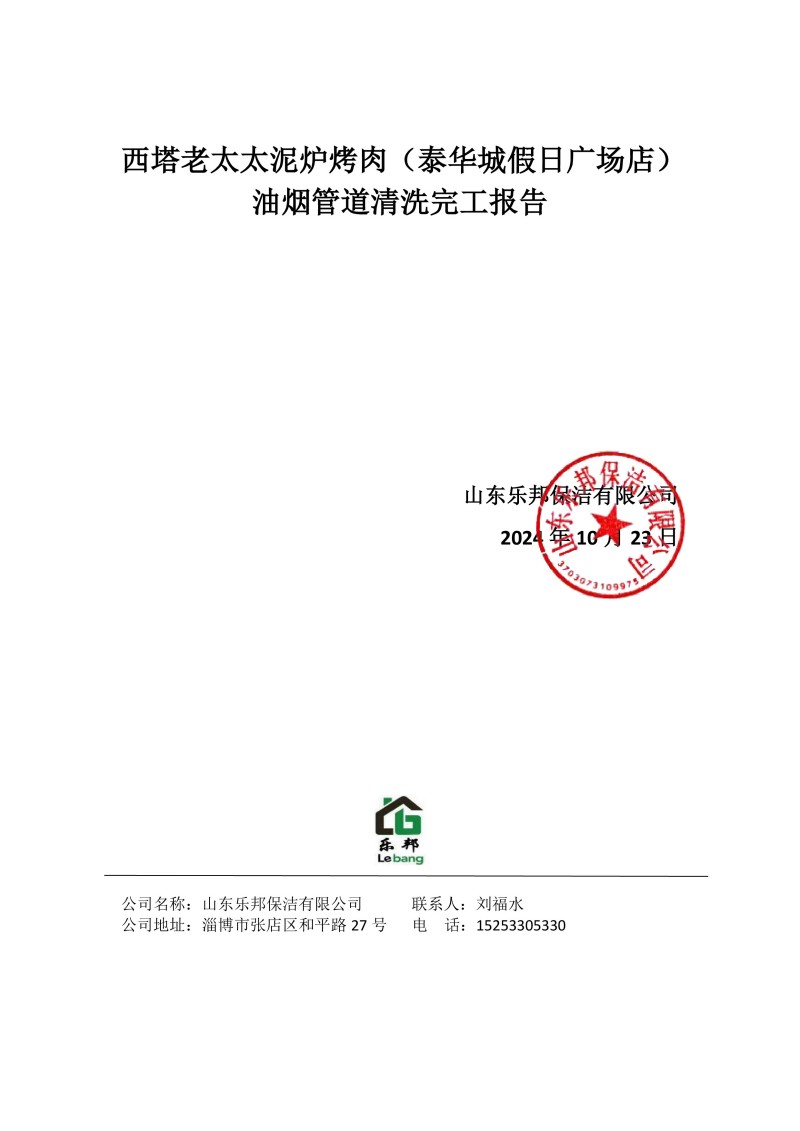 西塔老太太泥爐烤肉(泰華城假日廣場店)清洗報告24.10.23