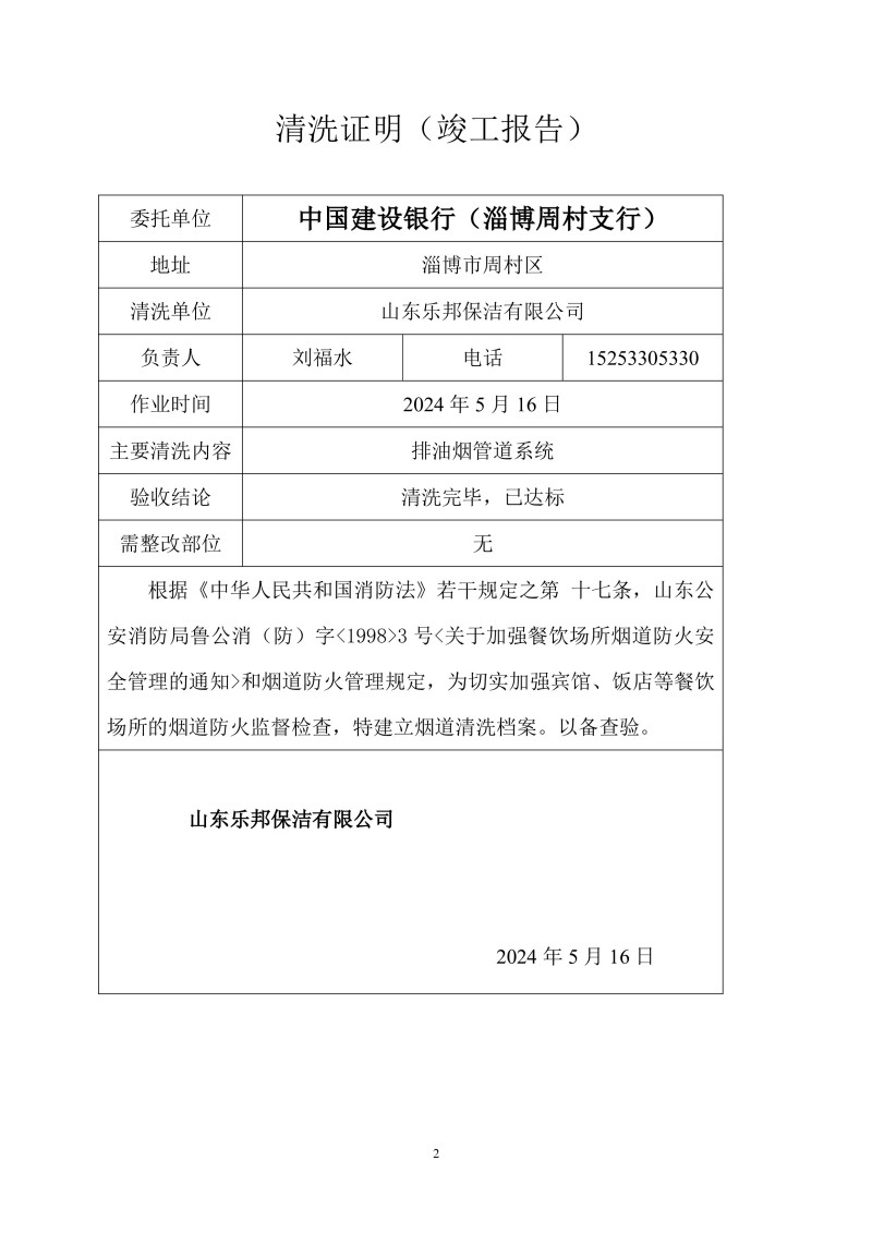 中國(guó)建設(shè)銀行(淄博周村支行)清洗報(bào)告24.5.15